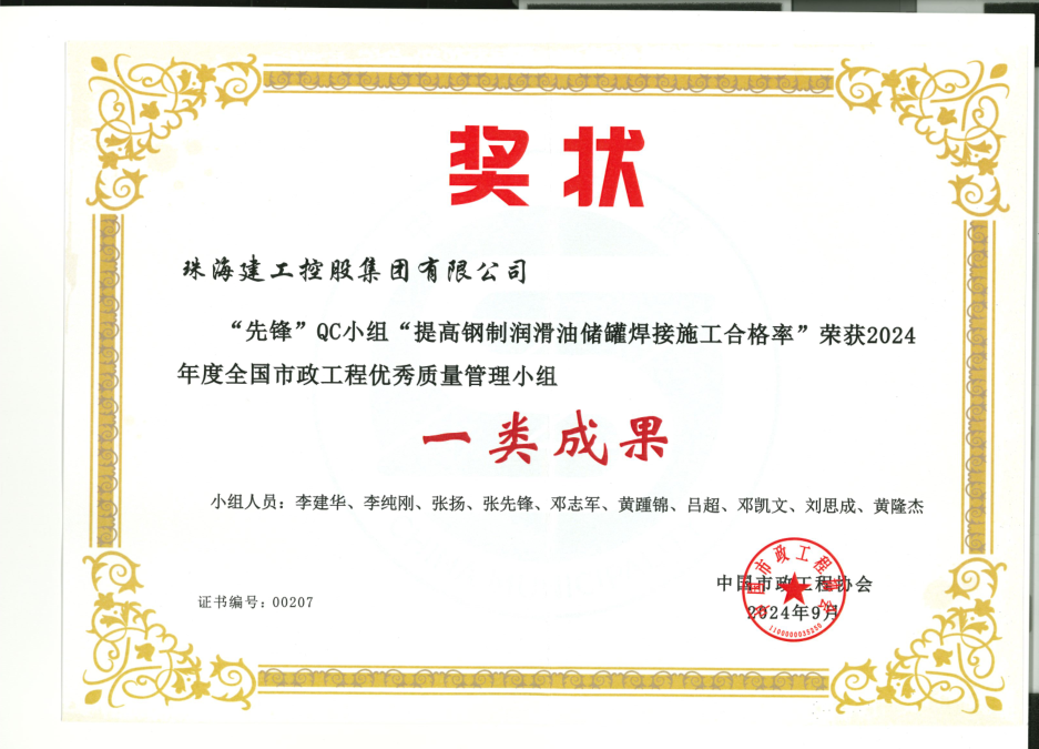 在本次QC小組活動(dòng)中,珠海建工集團(tuán)開展了一系列業(yè)務(wù)培訓(xùn),組織技術(shù)條線輸出了QC成果共33個(gè)課題,其中《提高鋼制潤(rùn)滑油儲(chǔ)罐焊接施工合格率》獲得國(guó)家級(jí)一類成果;其余成果中15個(gè)課題榮獲省級(jí)優(yōu)秀QC成果:2個(gè)課題榮獲省級(jí)一類成果;6個(gè)課題榮獲省級(jí)二類成果;7個(gè)課題榮獲省級(jí)三類成果;技術(shù)研發(fā)中心臨時(shí)負(fù)責(zé)人李建華榮獲優(yōu)秀發(fā)布者,本次QC小組活動(dòng)的優(yōu)異成績(jī),實(shí)現(xiàn)了公司QC成果獎(jiǎng)在國(guó)家級(jí)獎(jiǎng)項(xiàng)、省級(jí)獎(jiǎng)項(xiàng)方面零的突破,為公司工程項(xiàng)目評(píng)優(yōu)奠定了基礎(chǔ)。