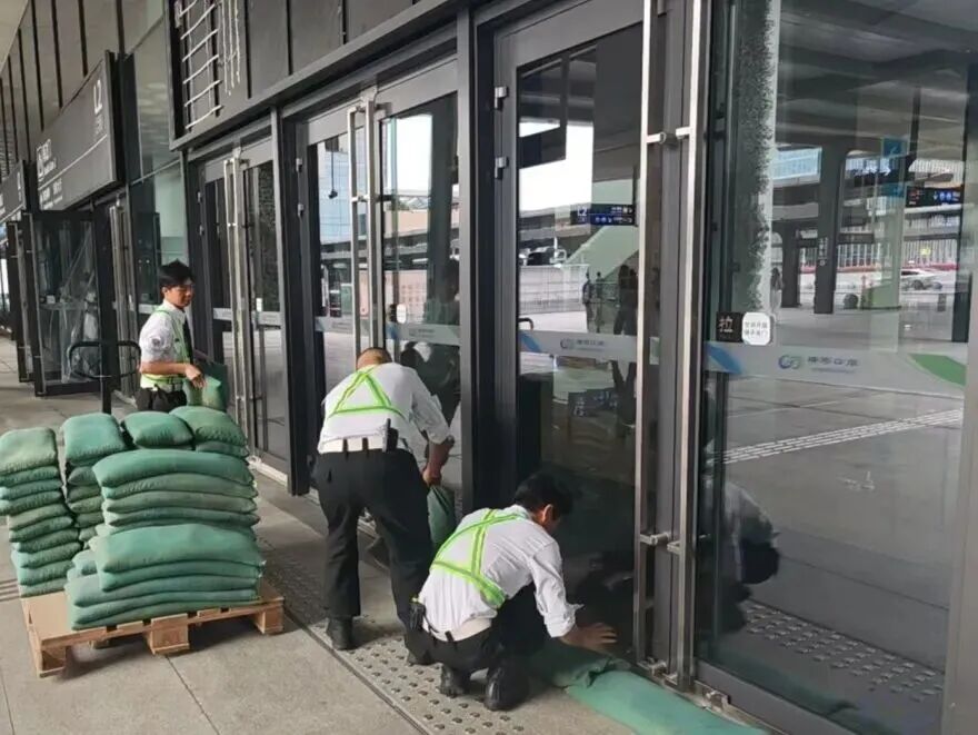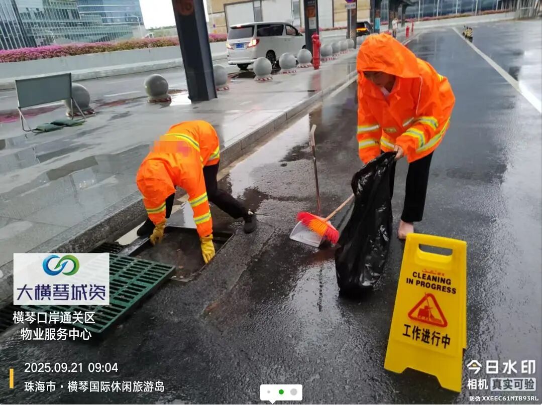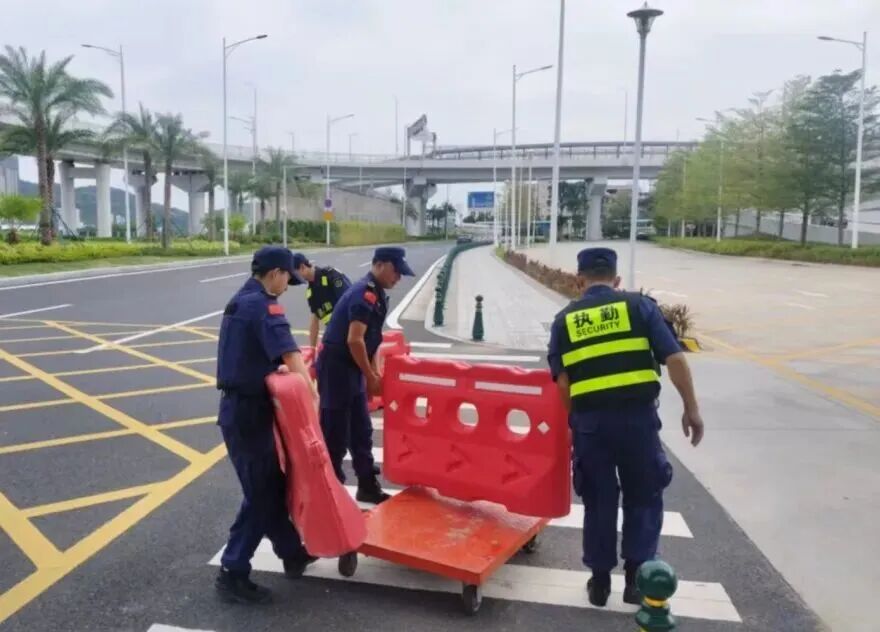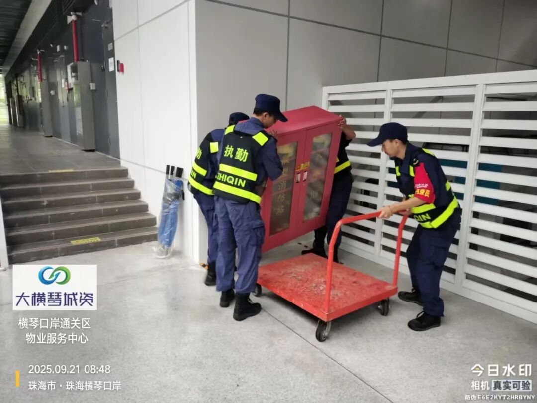 在橫琴口岸區(qū)域,提前排查200多個集水井,調(diào)集230個緊固件加固門窗,近3000條沙袋、近100個防洪擋板、11臺水泵等應(yīng)對福臨道、地庫36處接駁口、負(fù)二層下沉庭院、U行車道等重點區(qū)域強排和封堵需要。同時對通關(guān)區(qū)域的100余扇玻璃門進行加固,在易水浸區(qū)域放置沙袋、擋板。同時,全面清理雨水井、排水溝渠,確保排水暢通。